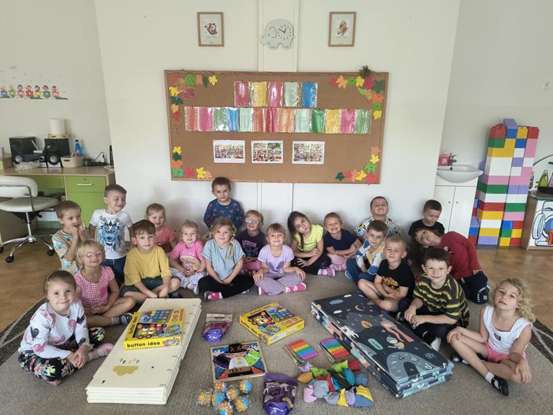 Dzieci z gr 6 serdecznie dziękują Radzie Rodziców za ufundowanie nowych zabawek. „Słoneczka” otrzymały suuuper duże maty z motywem dla dziewczynek i drugą dla chłopców, z których budują sobie jak to nazywają „bazy” lub domki. Poza tym przedszkolaki dostały: układanki do nauki