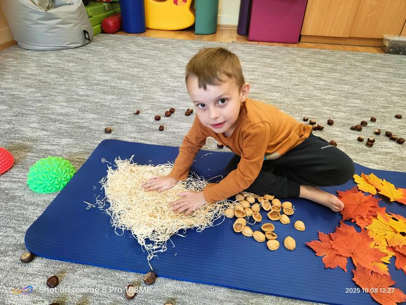 W październiku przedszkolaki uczęszczające ma zajęcia rewalidacyjne rozpoczęły swoją “sensoryczną przygodę” realizując Ogólnopolski Projekt Edukacyjny “Gramy Zmysłami”. W tym miesiącu czekała na dzieci “Jesienna Ścieżka Sensoryczna”. Głównym zadaniem ścieżki sensorycznej jest dostarczenie dziecku różnorodnych bodźców, jak również pobudzenie percepcji wzrokowo – ruchowej i kształtowanie właściwej reakcji na dotyk. Dzieci, które przechodzą przez ścieżkę bosymi stopami lub dotykają dłońmi jej poszczególnych elementów ćwiczą sprawność motoryczną, równowagę, koordynację ruchową, percepcję wzrokową oraz planowanie ruchu. Ciekamy na kolejne sensoryczne wyzwanie!!