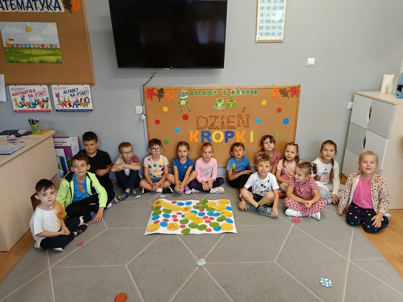 15.09. jest międzynarodowym Dniem Kropki, z tej okazji w ubiegły piątek w grupie żabek odbyły się specjalne zajęcia. Dzieci obejrzały film animowany o historii kropki "The Dot", poszukiwały kropek które ukryły się w naszej sali, grupowały kropki według wielkości, zagrały w kropkowego Twistera oraz wykonały wspólnie plakat z kolorowych kropek.