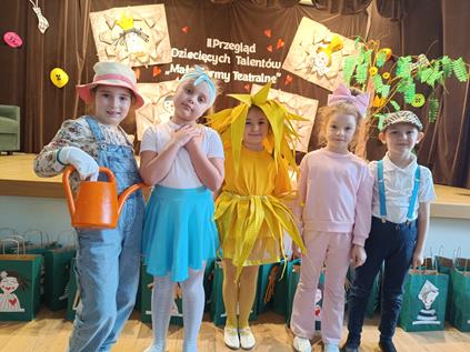 13.03.2025r. nasza grupa wspólne oraz grupa ,,Biedronek” reprezentowała nasze przedszkole w II Przeglądzie Dziecięcych Talentów ,,Małe formy teatralne”, który był objęty honorowym patronatem Burmistrza Miasta Sanoka. W przeglądzie wzięło udział siedem zespołów z sanockich przedszkoli. Dzieci z naszej grupy wystąpiły z teatrzykiem ,,Sąsiadki” traktującym o tym, dlaczego warto żyć w zgodzie. Przedszkolaki poradziły sobie doskonale, zaprezentowały wspaniałą grę aktorską na scenie. Na koniec występu zaśpiewały piosenkę ,,Mądre słonko”. Wszystkie dzieci w podziękowaniu za występy zostały obdarowane imiennymi dyplomami oraz prezentami.