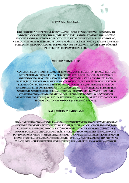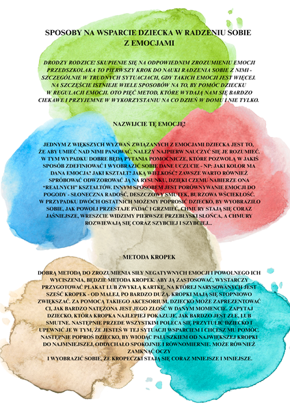 Ważną rolę w tym procesie odgrywają dorośli, zarówno rodzice, jak i nauczyciele, którzy prowadząc z dziećmi rozmowy o przeżywanych stanach, pozwalają im oswoić emocje