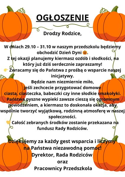 W związku z powyższym przedszkole w tym dniu będzie nieczynne.