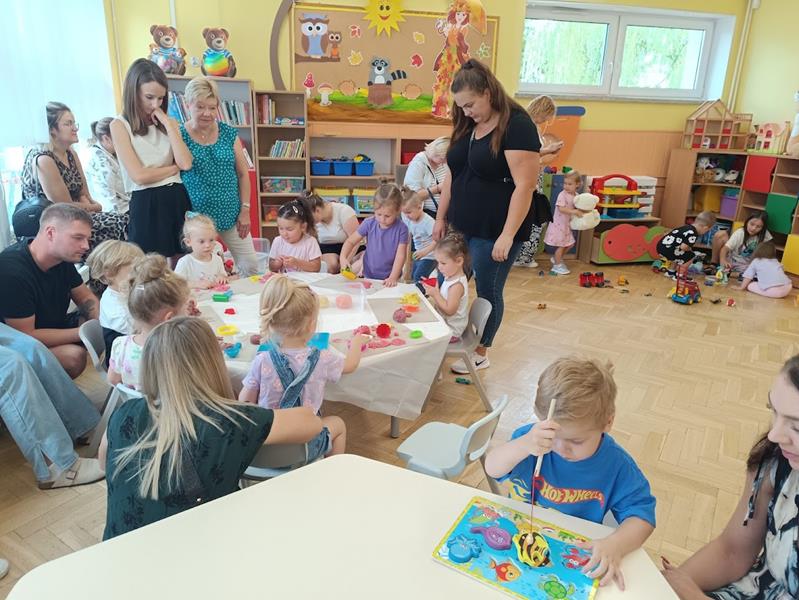 i koleżanki oraz wspólnie spędzić czas w salach przedszkolnych. Podczas zajęć maluchy uczestniczyły w zabawach integracyjnych, śpiewały piosenki, tańczyły i brały udział w zajęciach plastycznych. Dzięki temu mogły oswoić się z nowym miejscem i poczuć się swobodniej przed rozpoczęciem roku szkolnego.